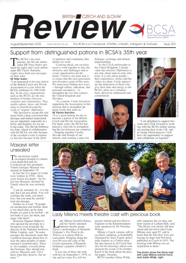 Exclusively produced for members of the BCSA, the Review is an established magazine that keeps abreast of developments in British, Czech and Slovak relations, the sort of coverage that rarely features in the mainstream UK media.